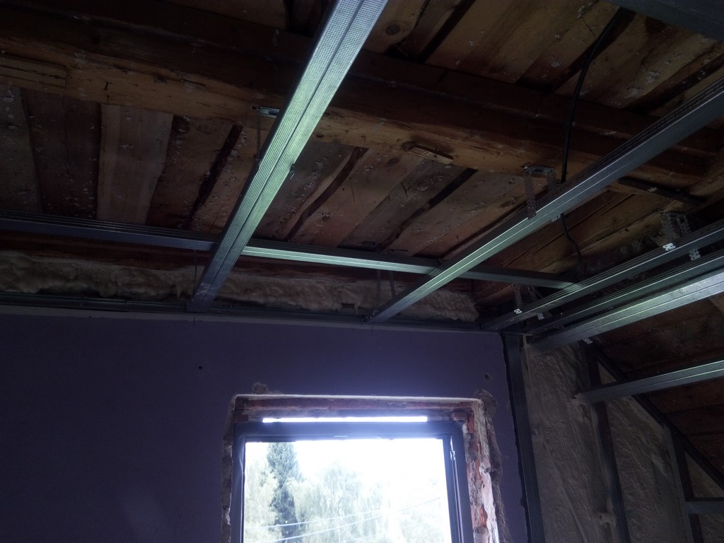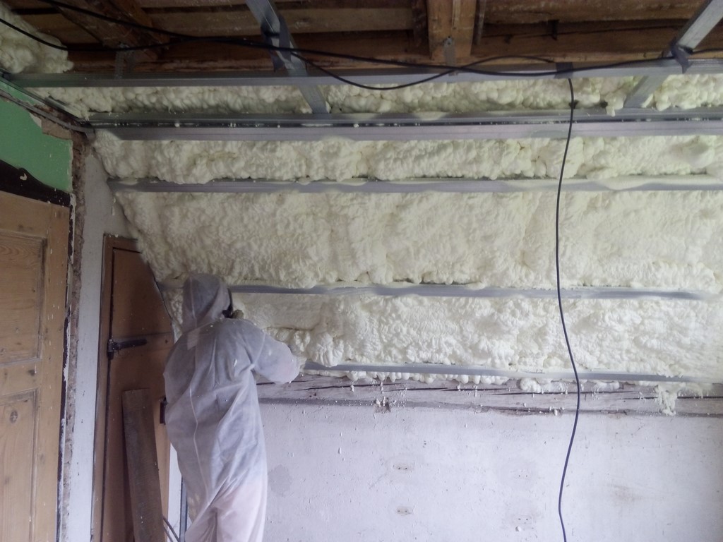Rekonstrukce rodinného domu stříkanou izolací mezi rastry. Použita měkká PUR pěna PUREX NG 0808. Zateplení stropu a stěn o ploše 83 m2 proběhlo během jednoho pracovního dne včetně úklidu. Orientační cena stříkané izolace 39 500 Kč.